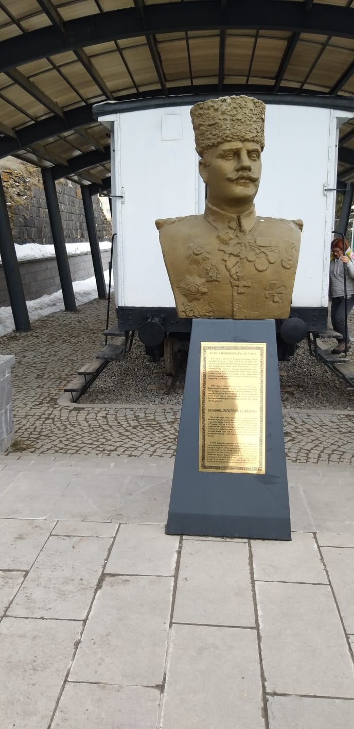 1921 yılında imzalanan Kars Antlaşmasının ardından Rus heyetince Paşa’ya bu beyaz vagon hediye edilir. Vagonda dinlenme, yemek, kalorifer odası, banyo yer alır. Ahşap malzeme ile döşenmiş vagonda Paşa’ya ait fotoğraflar ve eşyalar sergilenmektedir. Kazım Karabekir bu vagonu Kars – Erzurum arası seyahatlerinde kullanıyordu.